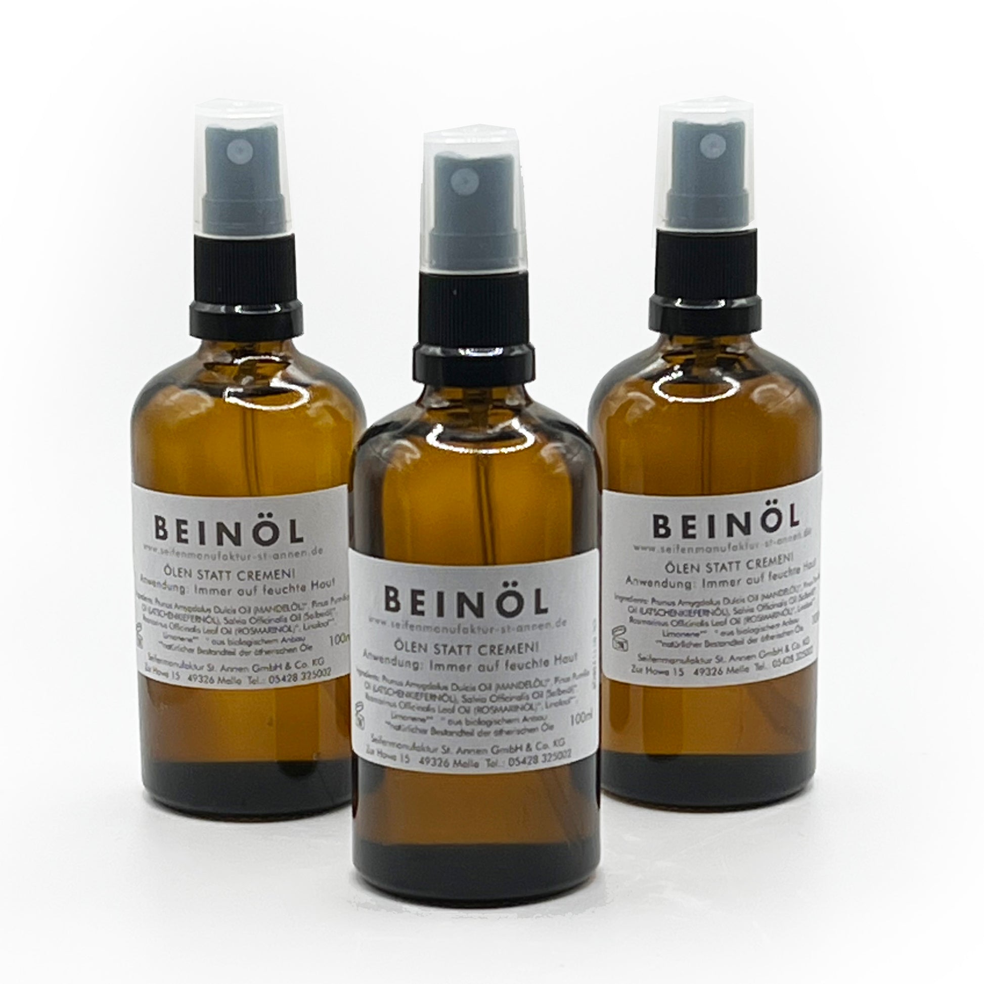 Unser Beinöl belebt deine müden Beine nach einem anstrengenden Tag. Auch die Fußsohlen werde die eine Massage lange danken. Der aufsteigende Duft von Salbei, Kiefer, Kampfer und Wacholder erfrischt dich auch von innen.
