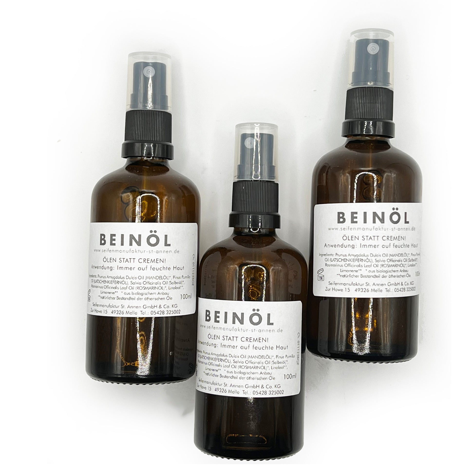 Mandelöl (kaltgepresst), ätherische Öle: Kiefer, Salbei, Kampfer, Rosmarin